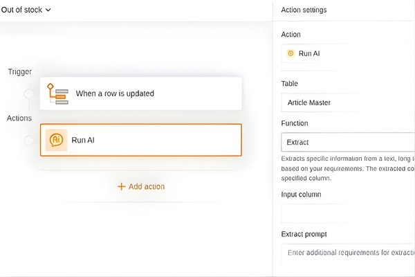 Utilice las automatizaciones integradas soportadas por IA para conseguir procesos eficientes y flujos de trabajo ágiles - con el propio servidor de IA de SeaTable.