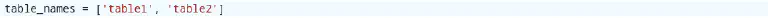 # Add the names of all tables of the Airtable base, i.e. ['table 1', 'table 2']
