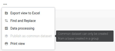 In each base belonging to a group, you can create a table view as a common dataset. The prerequisite for this is that you are the owner or administrator of the group (and not just a member). You can then import the common dataset, including its specific filtering and sorting conditions, as a new table into any other base in the group.