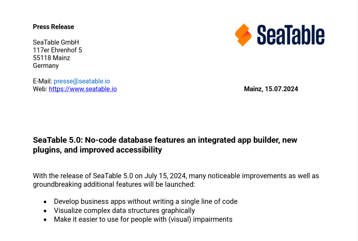 Все последние новости о SeaTable